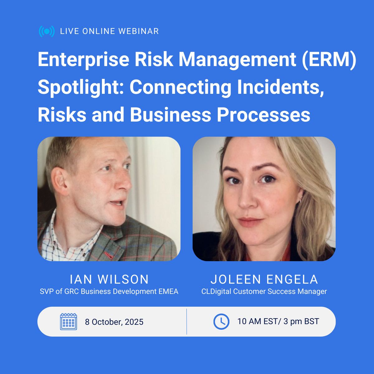 In this 30-minute session, we’ll explore how CLDigital 360’s ERM Module helps bring these elements together. Through a live demonstration, we’ll show how incidents can be linked to KRIs, controls, and risk registers, and then tied to the assets and processes they affect.