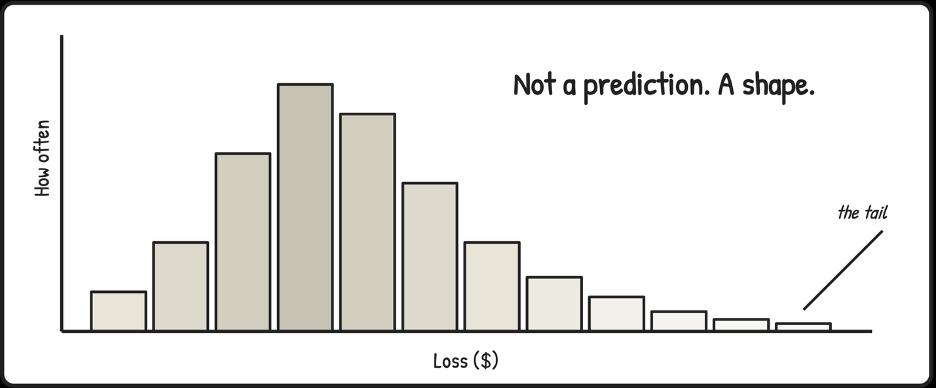 - Distributions, Not Predictions: The output of simulation is a distribution of potential results rather than a single forecast, showing where most outcomes cluster and how extreme losses might emerge.